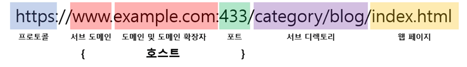 URL은 프로토콜, 호스트(도메인:포트), 서브 디렉토리, 웹 페이지로 이루어져 있지만 일반적으로 프로토콜, 도메인, 서브 디렉토리 정도만 표시된다.